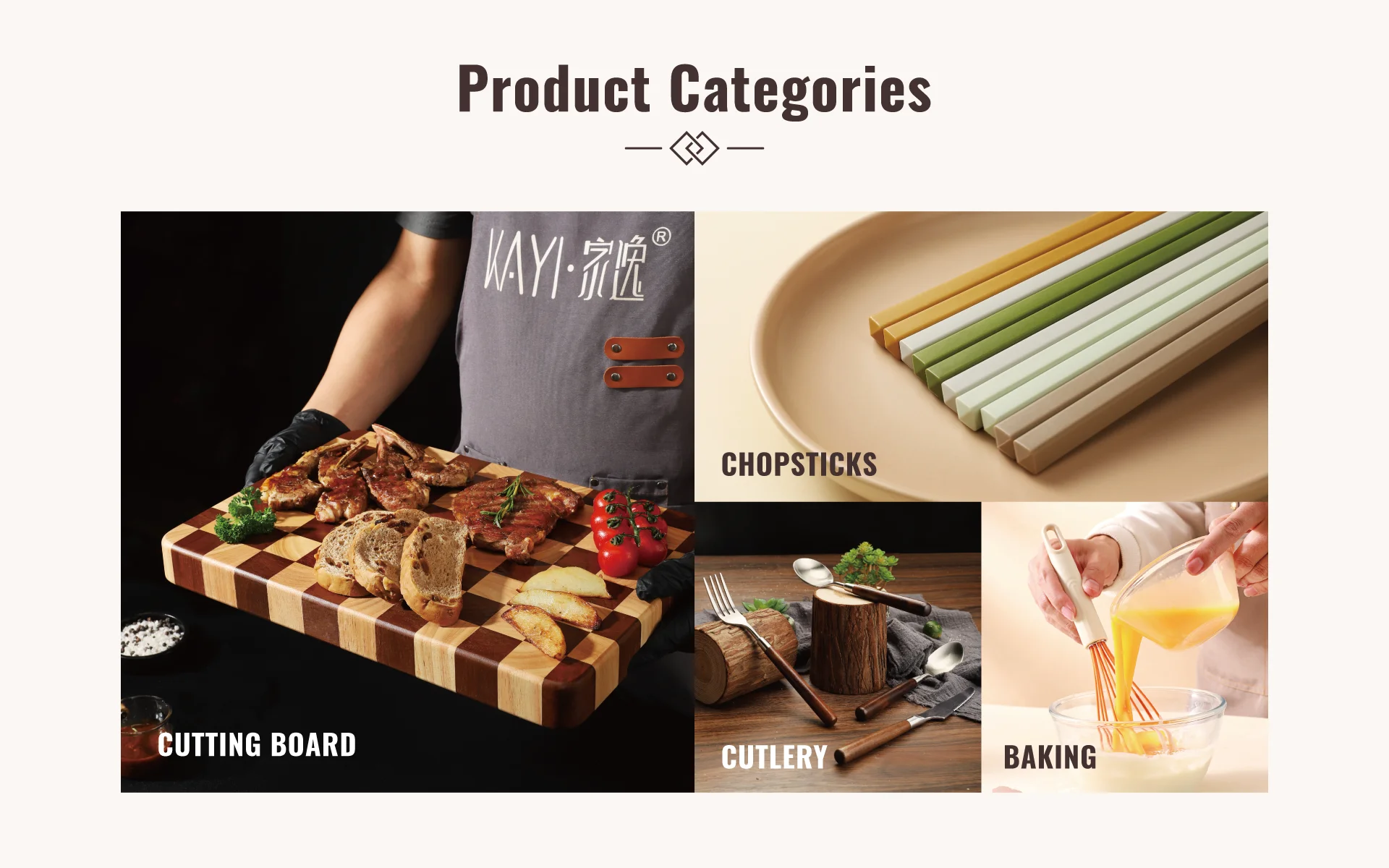 المنتجات الرئيسيةلوح تقطيع ، عيدان الطعام ، أواني المطبخ ، طقم أدوات المائدة من الفولاذ المقاوم للصدأ